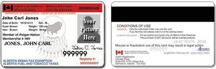 A “Certificate of Indian Status” card, issued by the Federal Government of Canada, Indigenous Services Canada, is the only form of identification acceptable to exempt a Status Indian from taxes on a vehicle sale or lease.